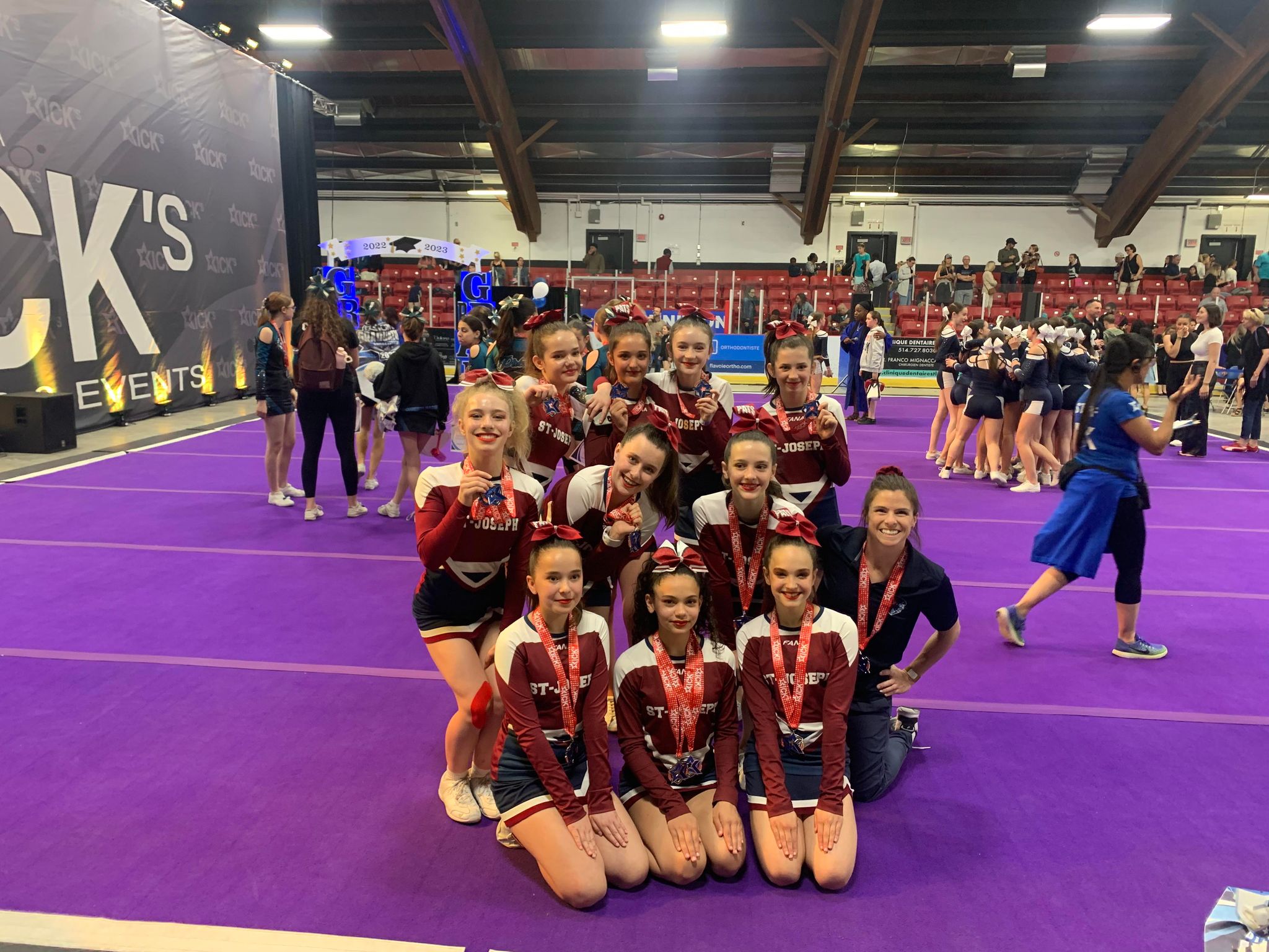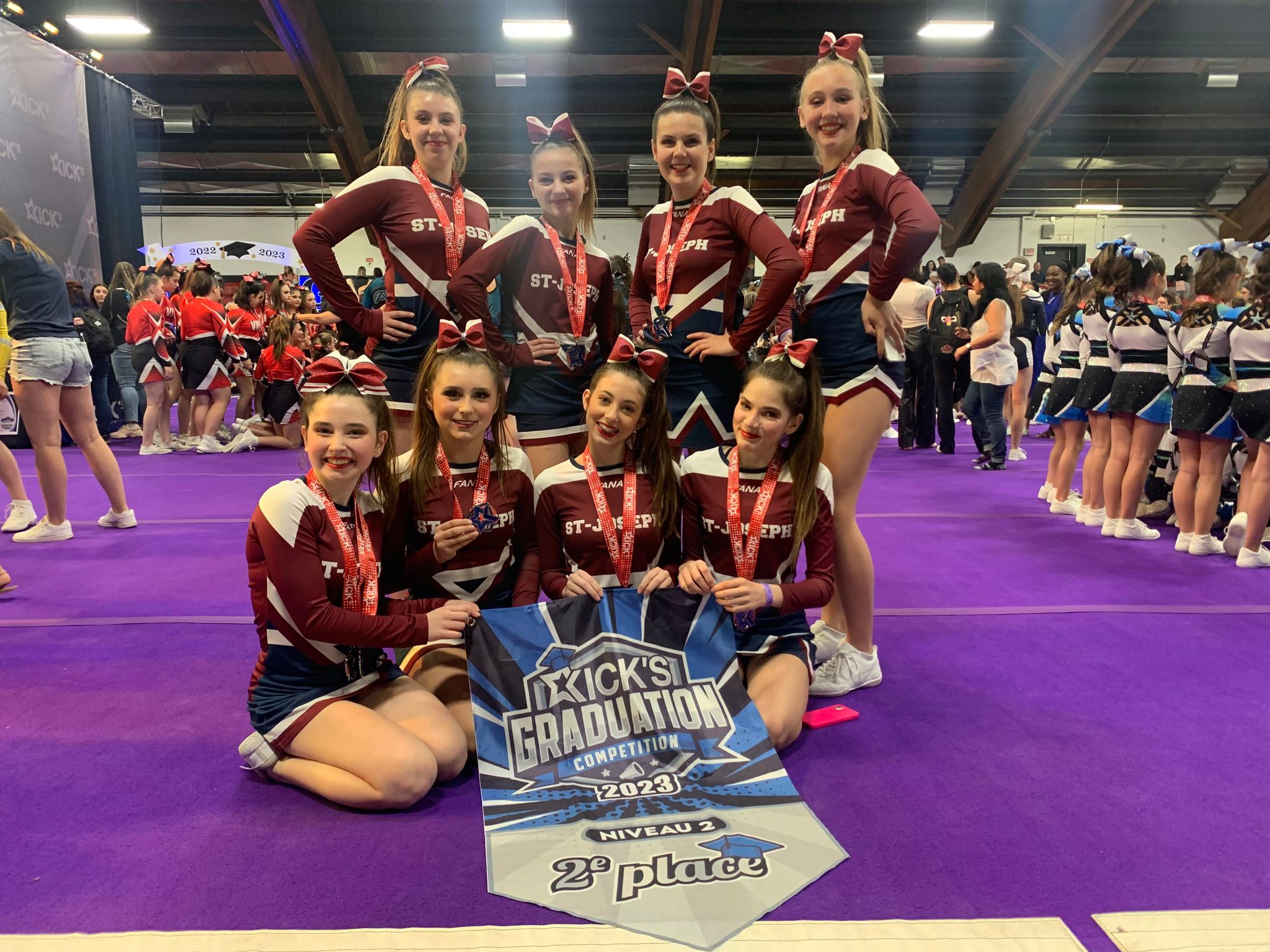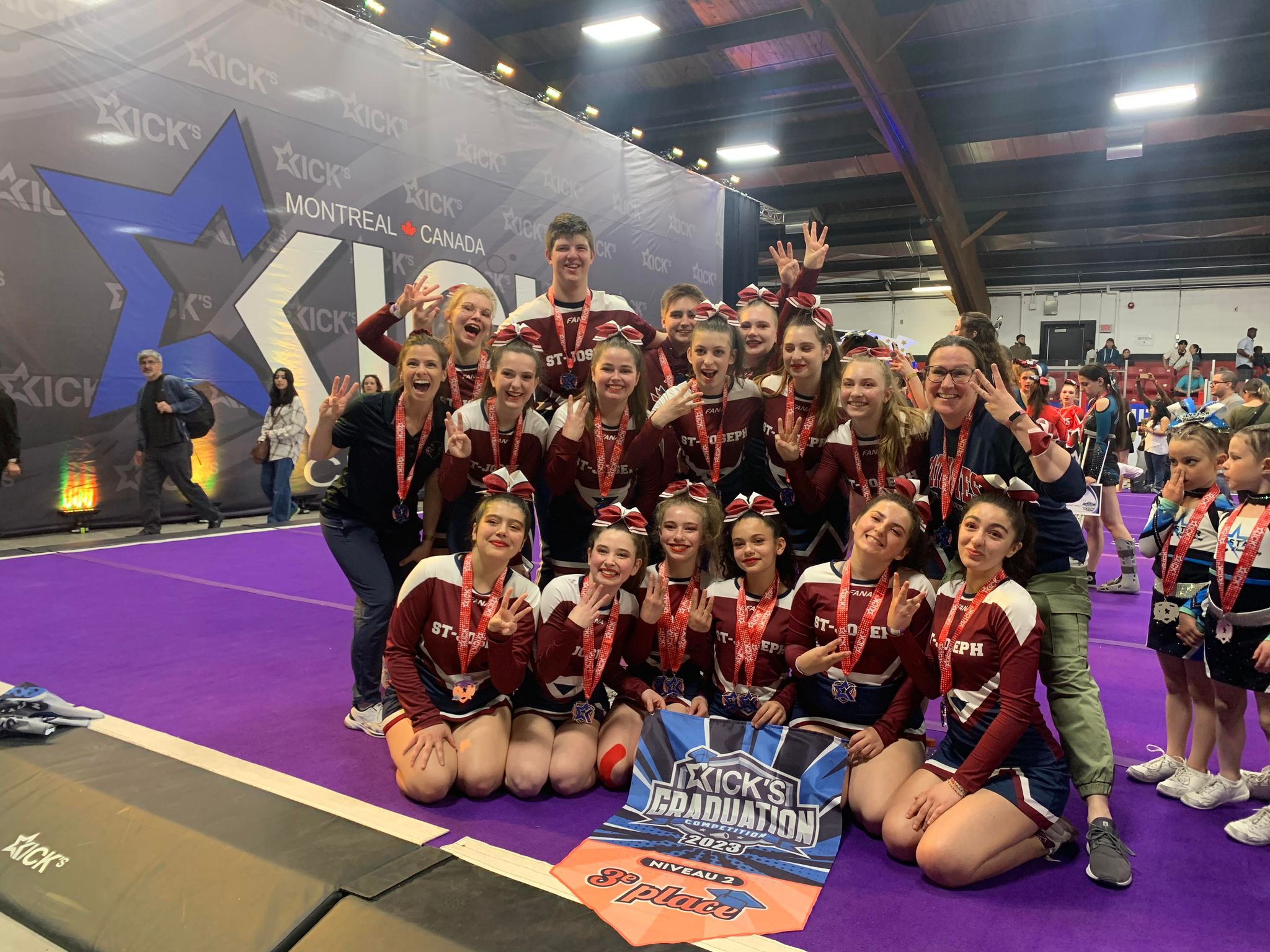 Félicitations à trois de nos équipes de cheerleading qui ont réussi à exécuter leur meilleure performance de la saison lors d’une compétition samedi dernier au Kicks graduation Montréal. Avec une 4e place, une 3e place et une 2e place, ces équipes sont très fières de leur performance sans faute.