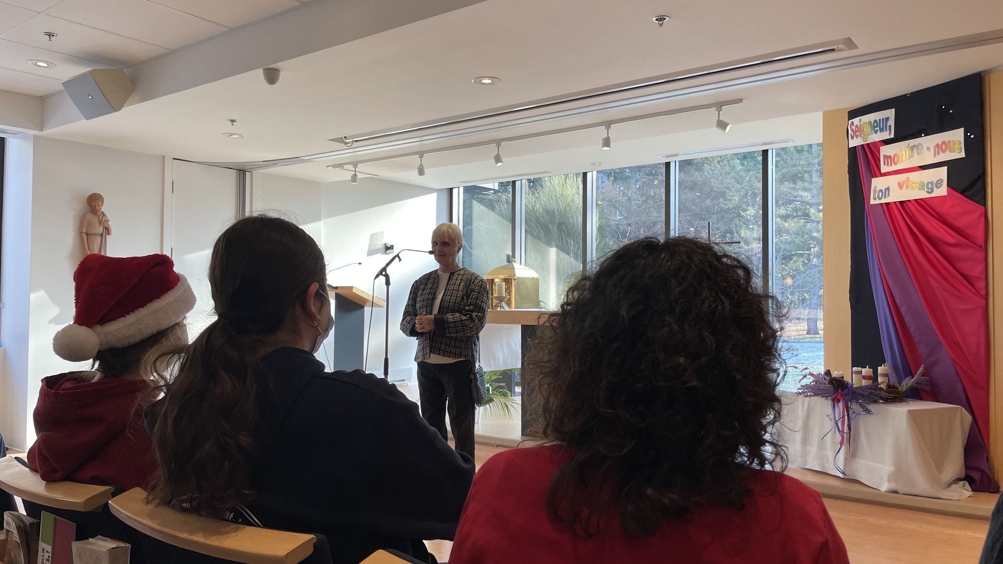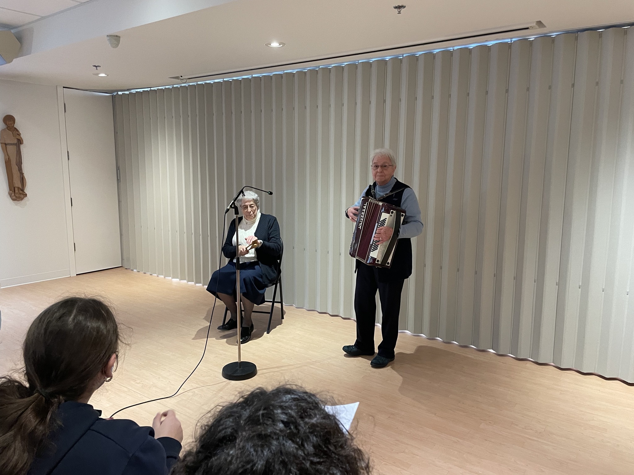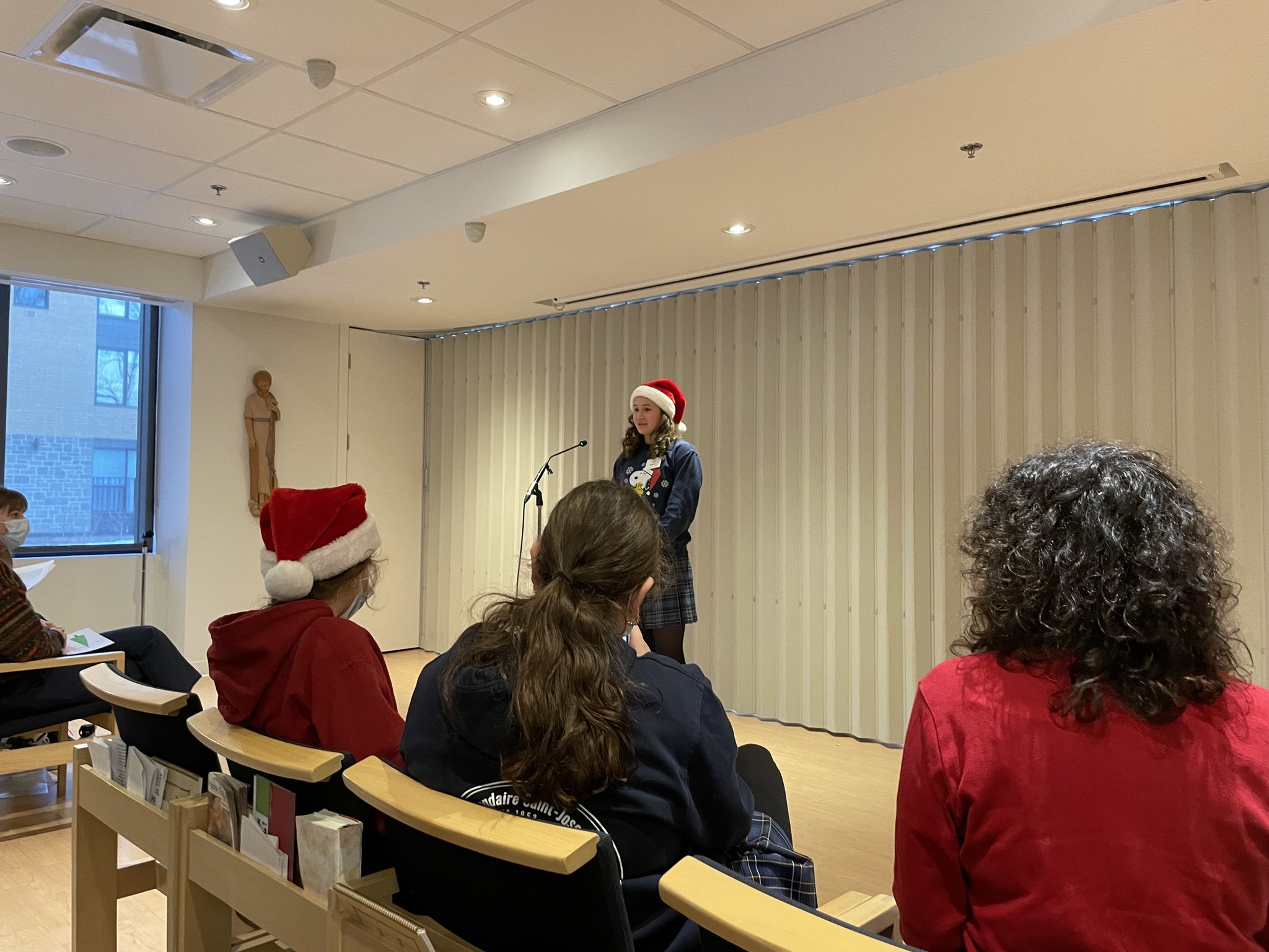 À l’occasion du temps des Fêtes, nos finissants du PEI ont vécu un avant-midi de partage avec les Soeurs de Saint-Joseph. Nos élèves ont offert des cartes aux religieuses, ils ont aussi chanté des chansons de Noël avec elles. Quelques élèves ont présenté leur récitation poétique et un autre, un Lip Dub réalisé dans le cadre de son projet personnel. Nos jeunes ont aussi pu bénéficier des témoignages des sœurs qui leur ont parlé des objets de leur chapelle, du Noël d’antan, de la visite de certaines d’entre elles en Afrique. Nos élèves ont même eu droit à une prestation musicale avec accordéon et cuillères. L’activité s’est terminée par des discussions intergénérationnelles autour d’une collation. Bilan de cette activité: des yeux brillants, des sourires lumineux et le bonheur de savoir qu’il y aura une nouvelle demi-journée de partage le 14 février!