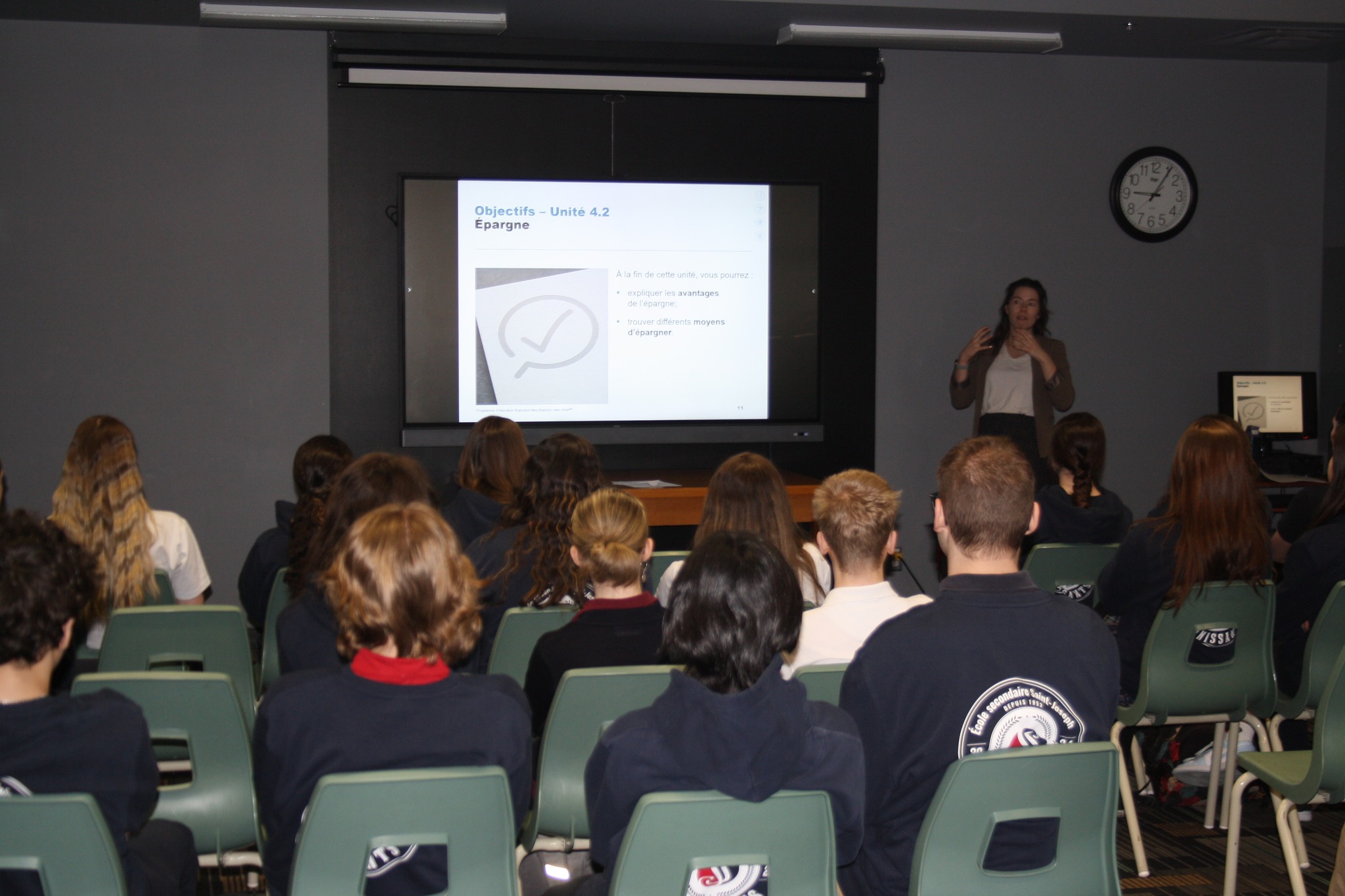 Le mardi 6 février dernier, dans le cadre du cours d’éducation financière, les élèves des groupes 51, 52 et 53 ont eu le privilège d’assister à l’atelier – Mes Finances Mes Choix – animé par Noémie Derken van Angeren, conseillère chez Espace Carrière. Lors de cet atelier, les élèves ont eu la chance d’aborder certains sujets touchant les finances personnelles particulièrement l’épargne et différents types de placements.