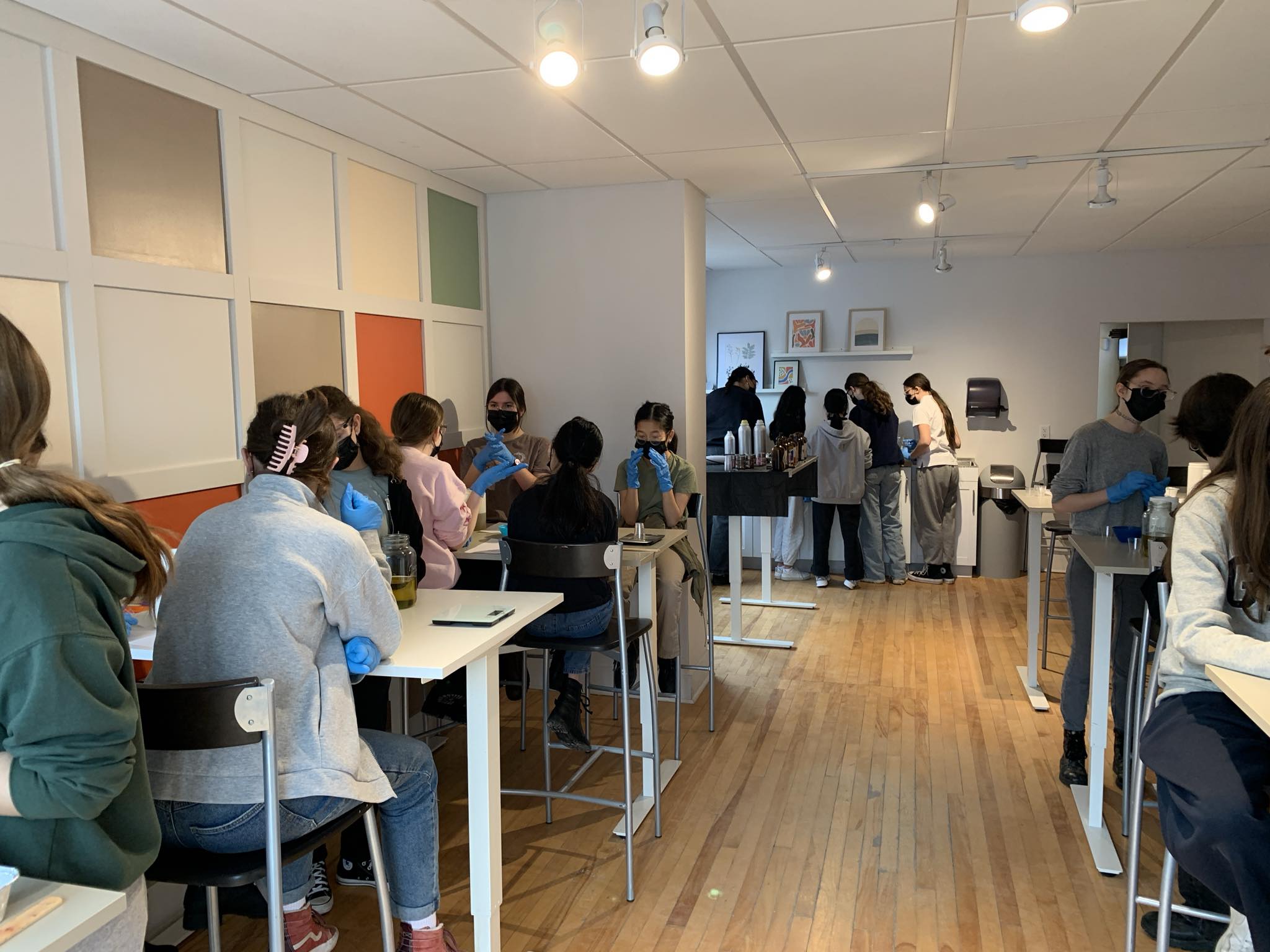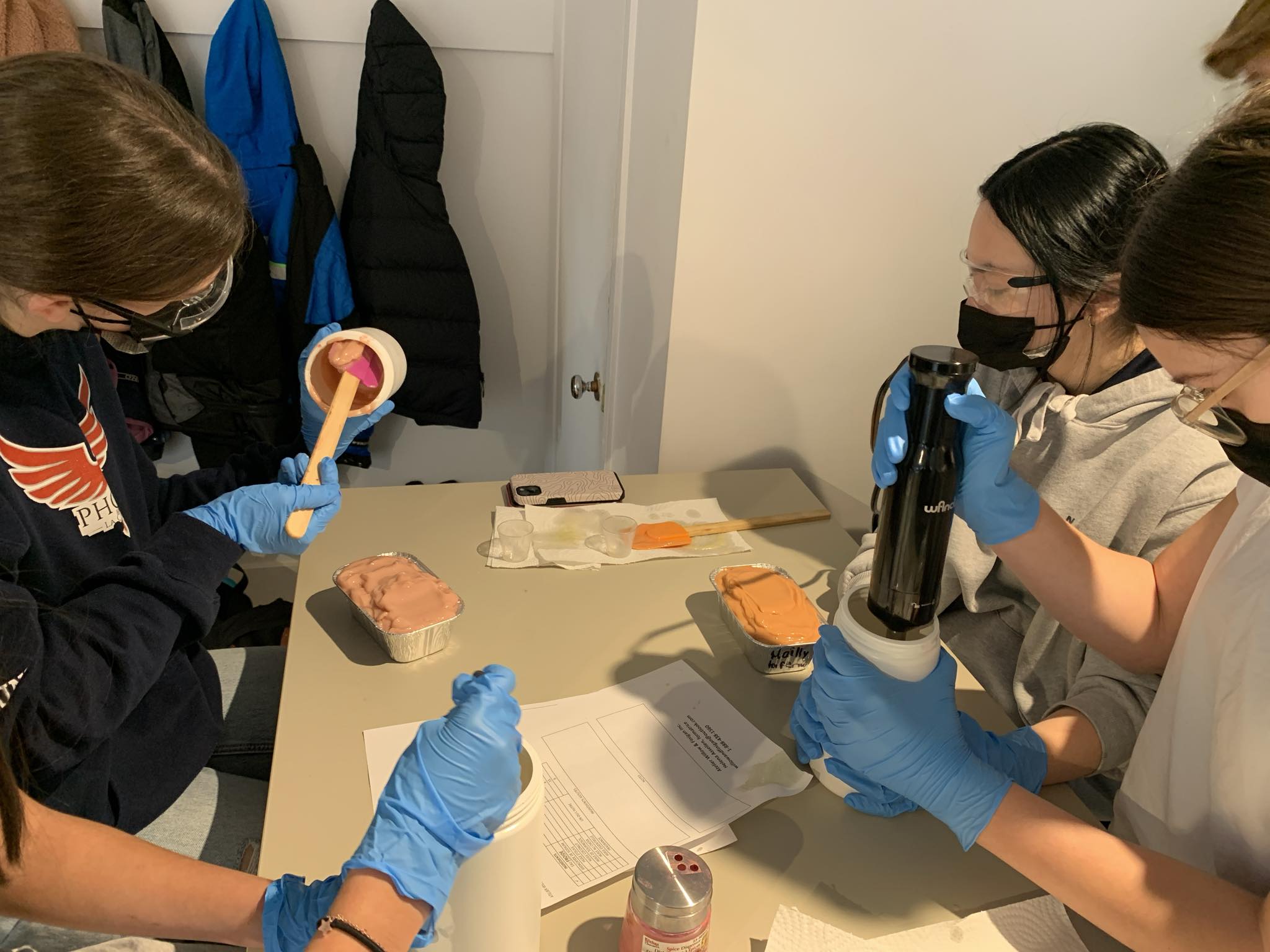 Le 23 février dernier, les élèves du groupe MultiArts de 2e secondaire ont passé une fabuleuse journée aux Finfinettes à Granby. Ils ont été initiés à la fabrication de savon par saponification à froid. Ils ont ensuite peint sur du tissu pour fabriquer de jolis porte-clés. De beaux projets à rapporter à la maison.