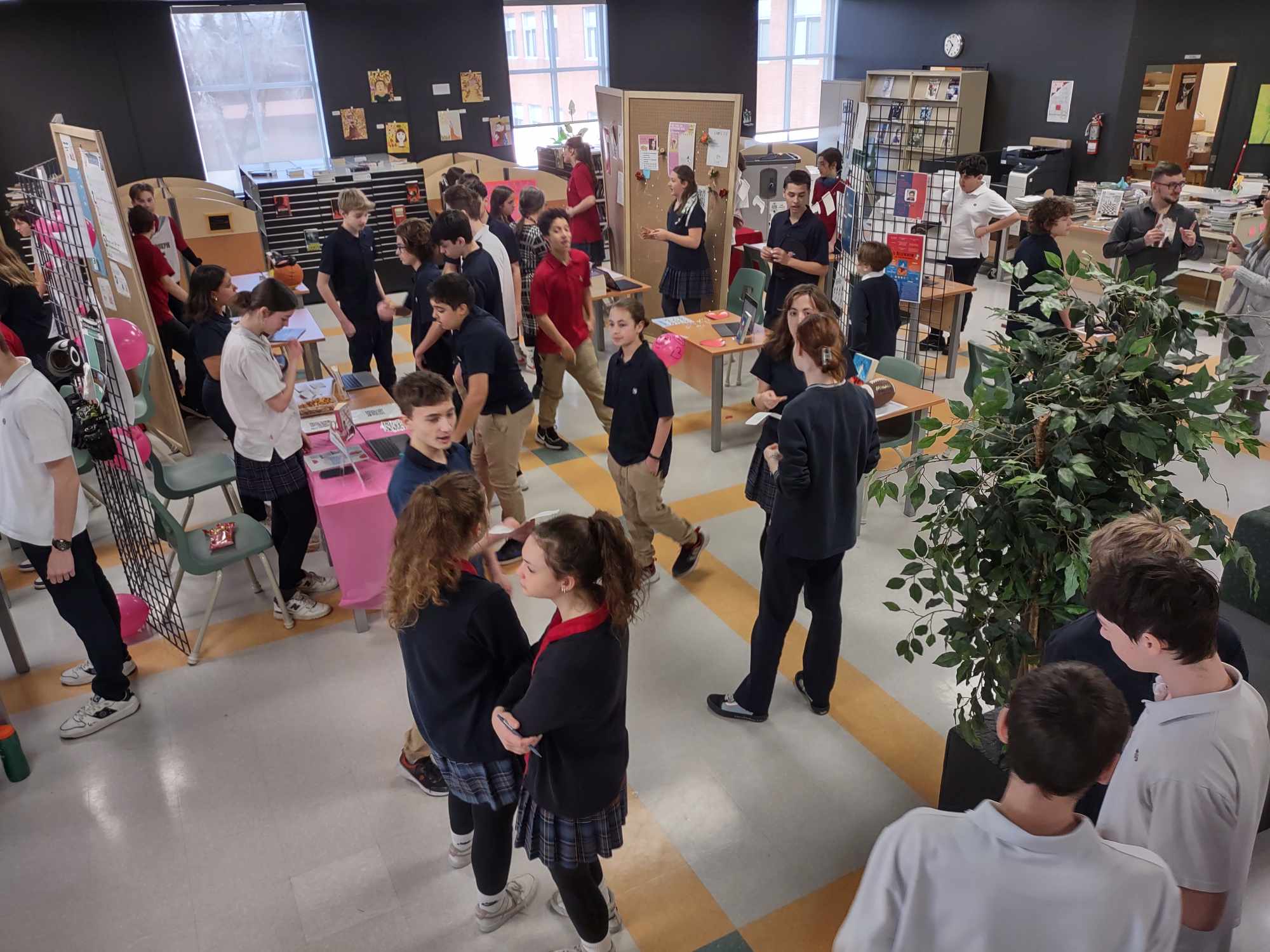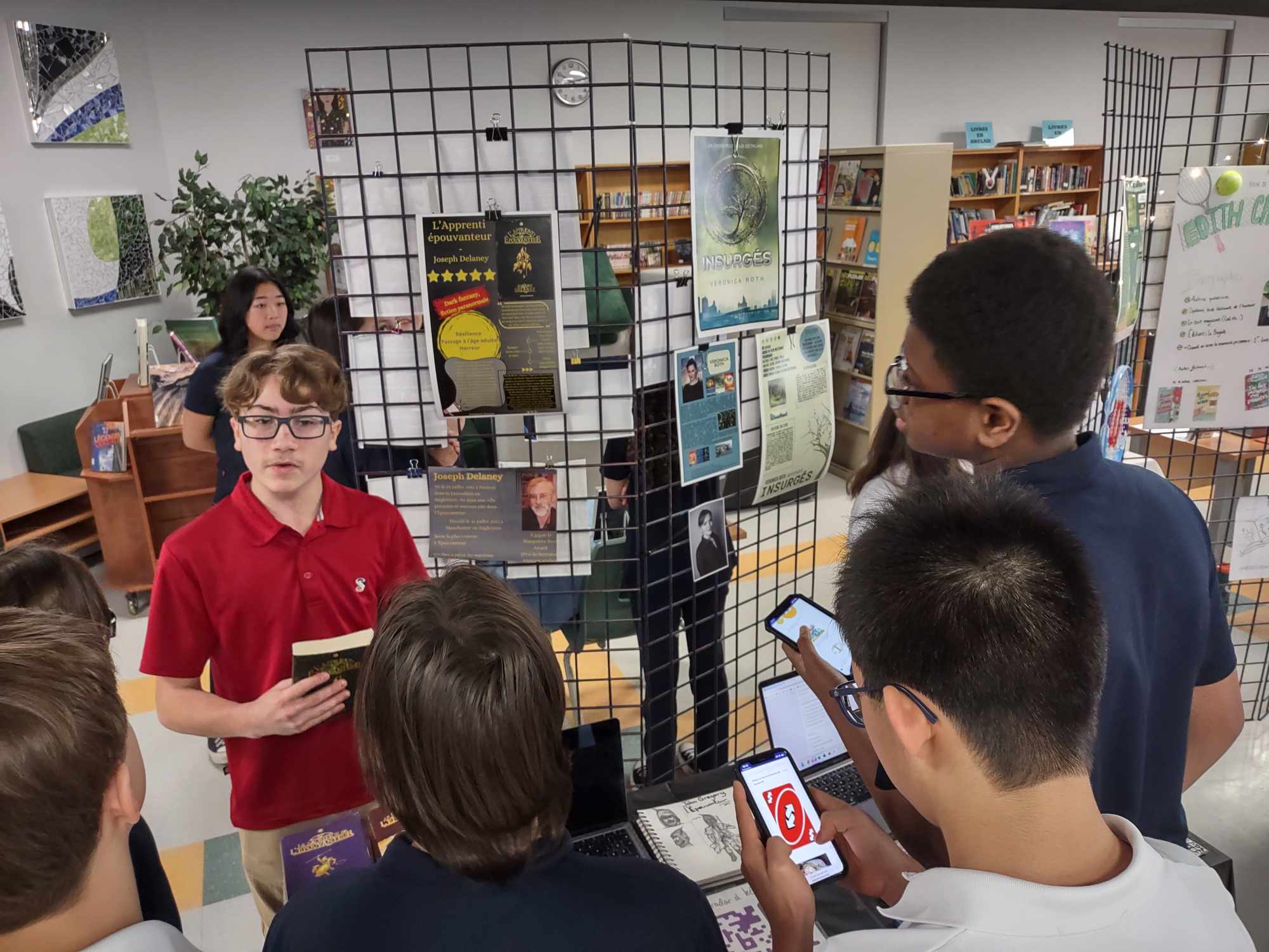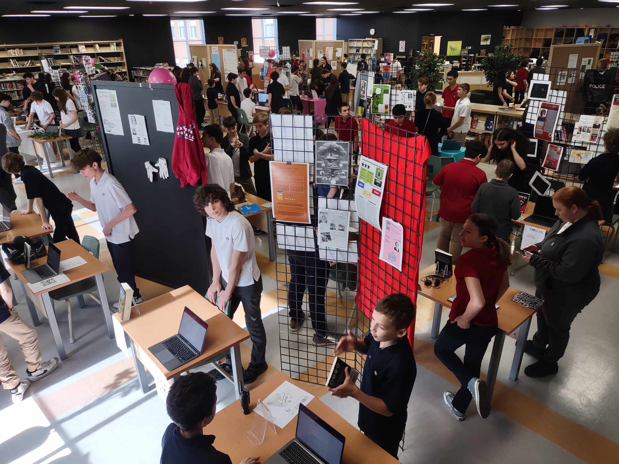 La 2e édition de l’expo-livre «Découvre ta bibliothèque», a eu lieu ce 22 mars, à l’ÉSSJ. Nous sommes fiers de nos élèves des groupes PEI de 2e secondaire qui ont pris un mois de leur temps pour choisir un livre présent dans les rayons, créer un catalogue littéraire en couleur et présenter le tout à plus de 200 élèves. Une belle façon de valoriser l’espace et le contenu littéraire de la bibliothèque !