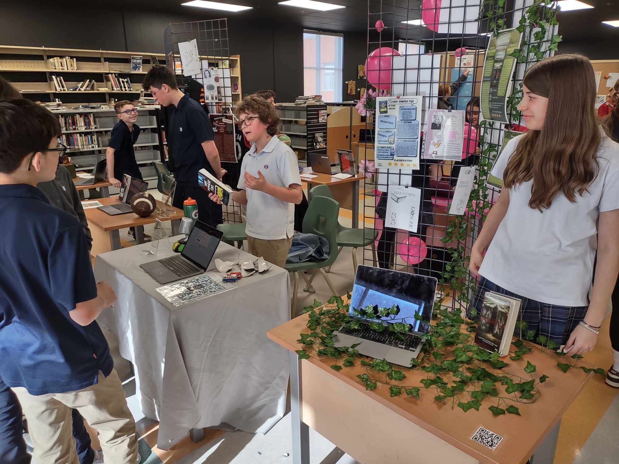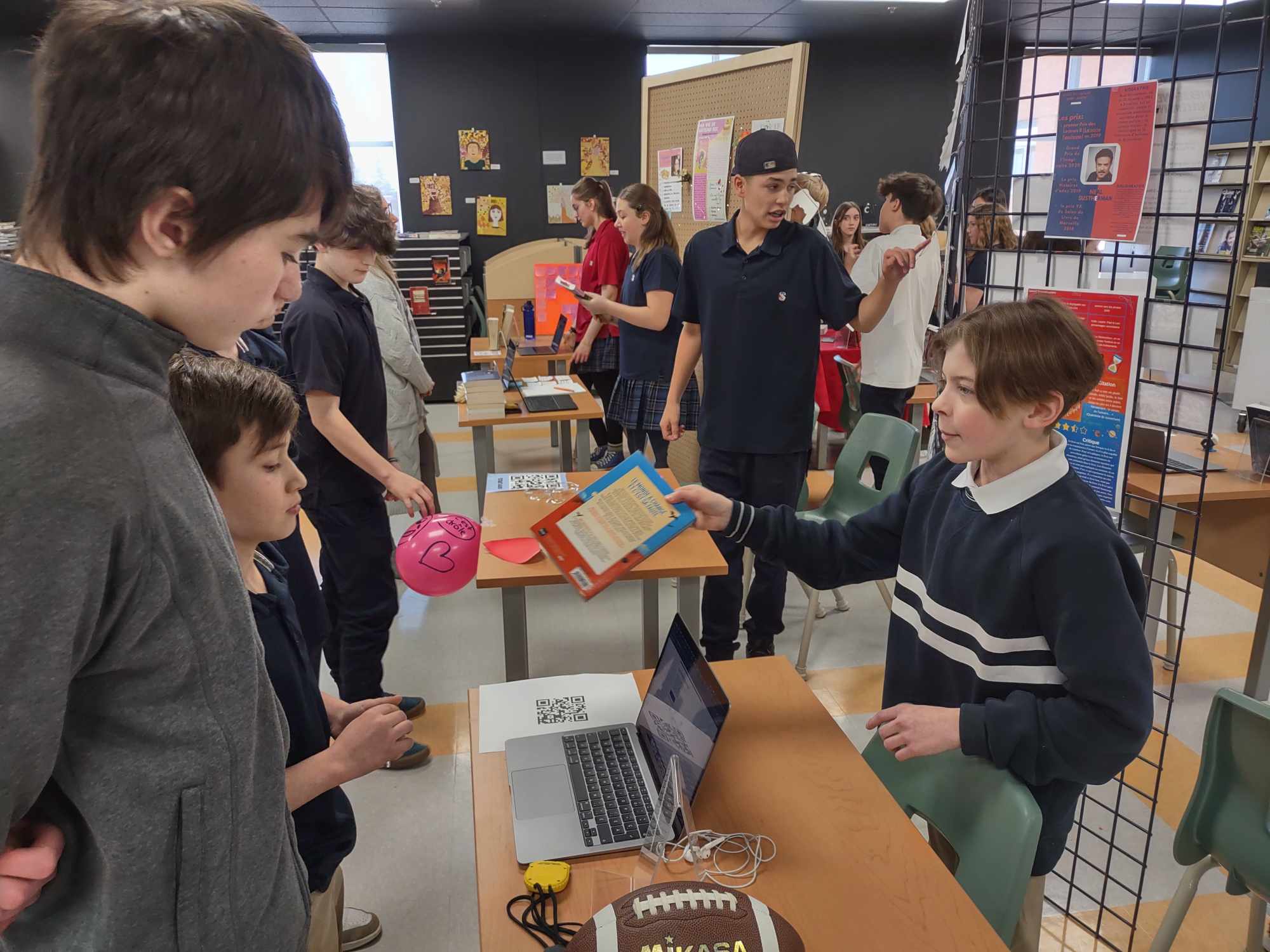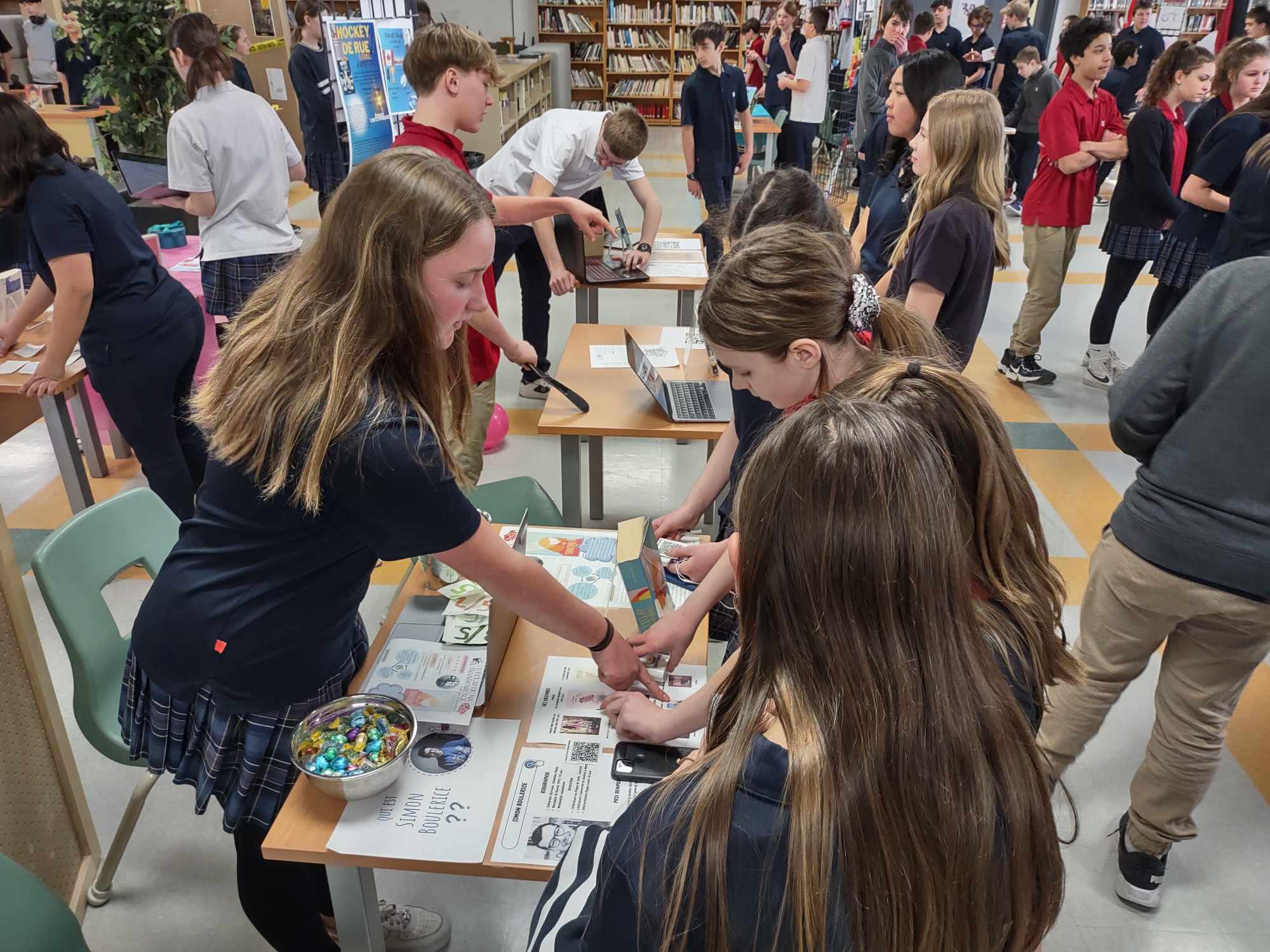 La 2e édition de l’expo-livre «Découvre ta bibliothèque», a eu lieu ce 22 mars, à l’ÉSSJ. Nous sommes fiers de nos élèves des groupes PEI de 2e secondaire qui ont pris un mois de leur temps pour choisir un livre présent dans les rayons, créer un catalogue littéraire en couleur et présenter le tout à plus de 200 élèves. Une belle façon de valoriser l’espace et le contenu littéraire de la bibliothèque !