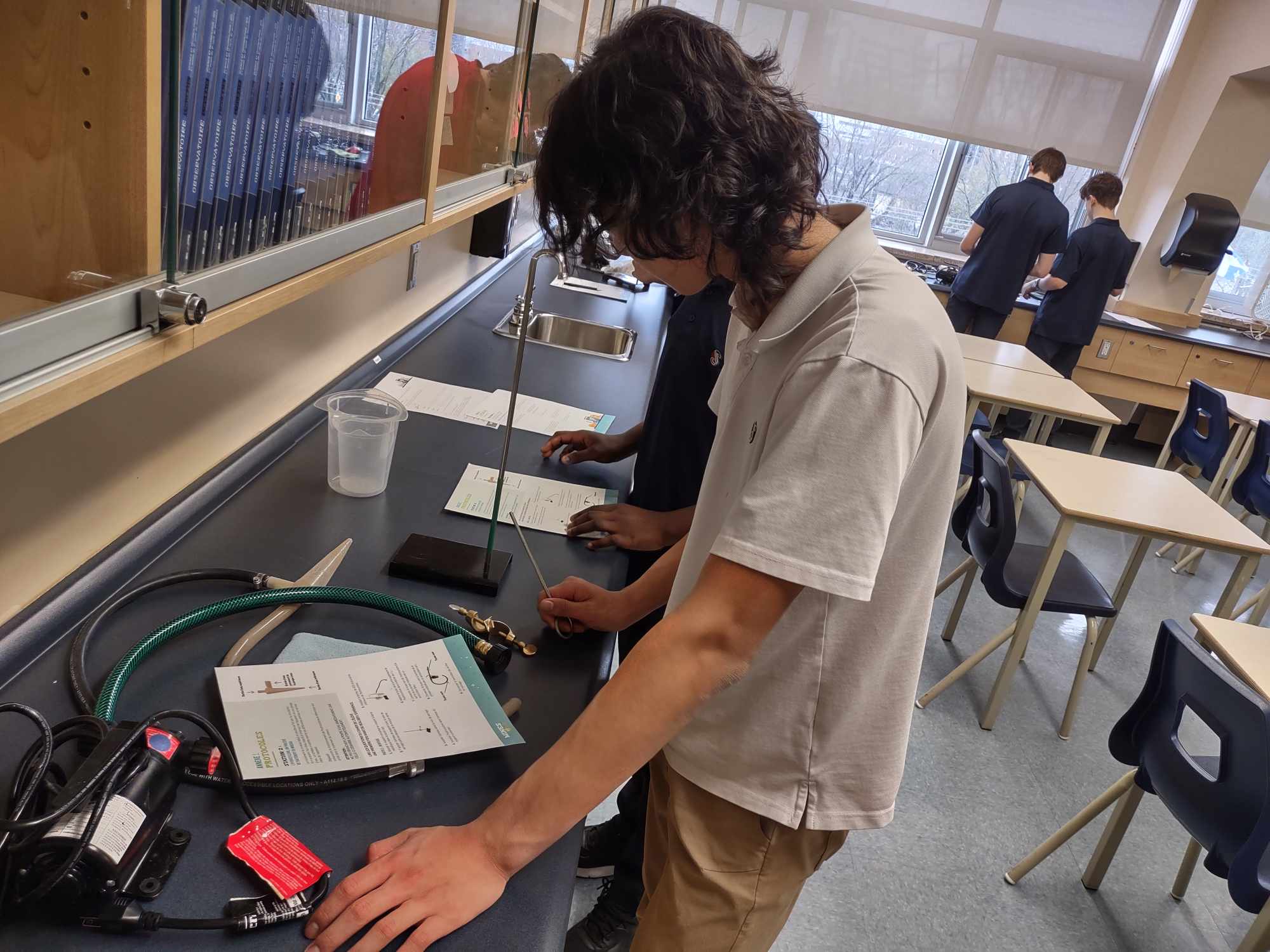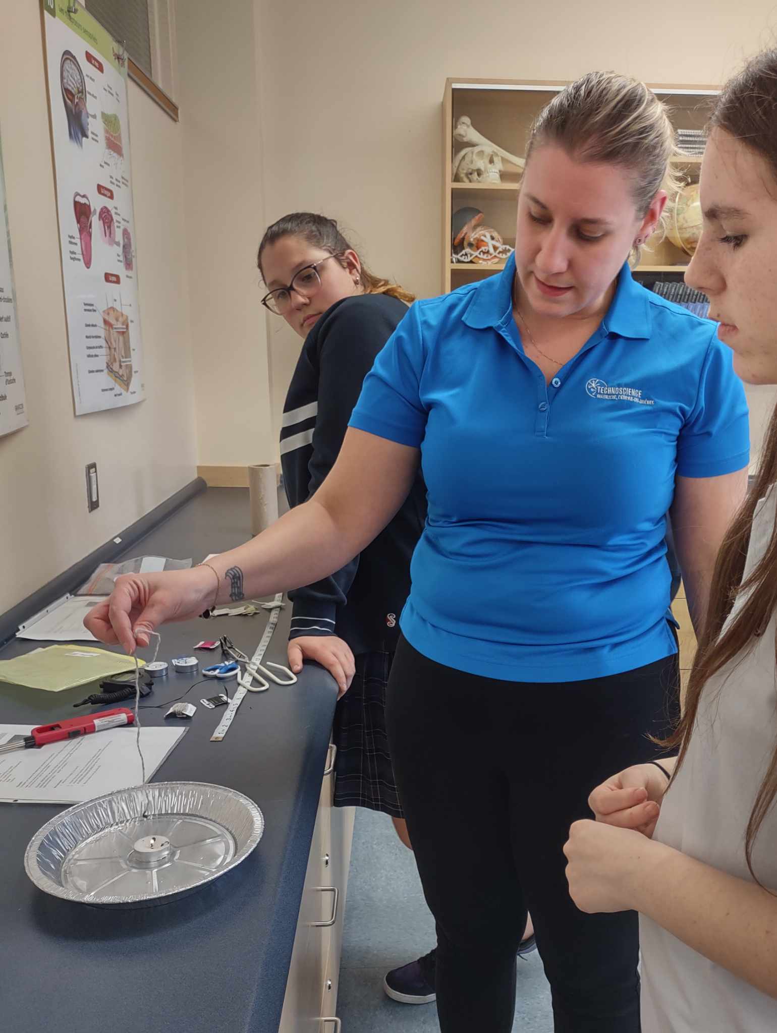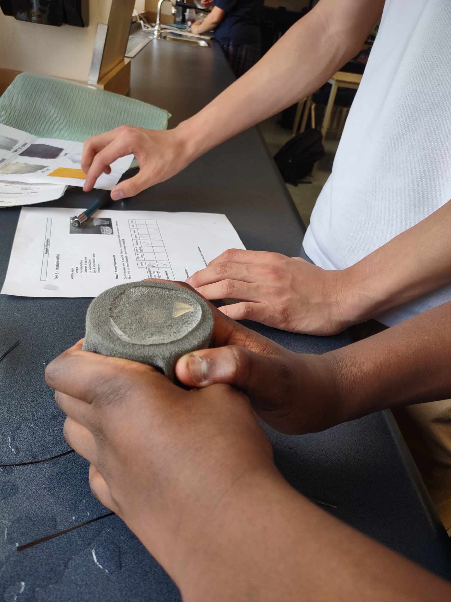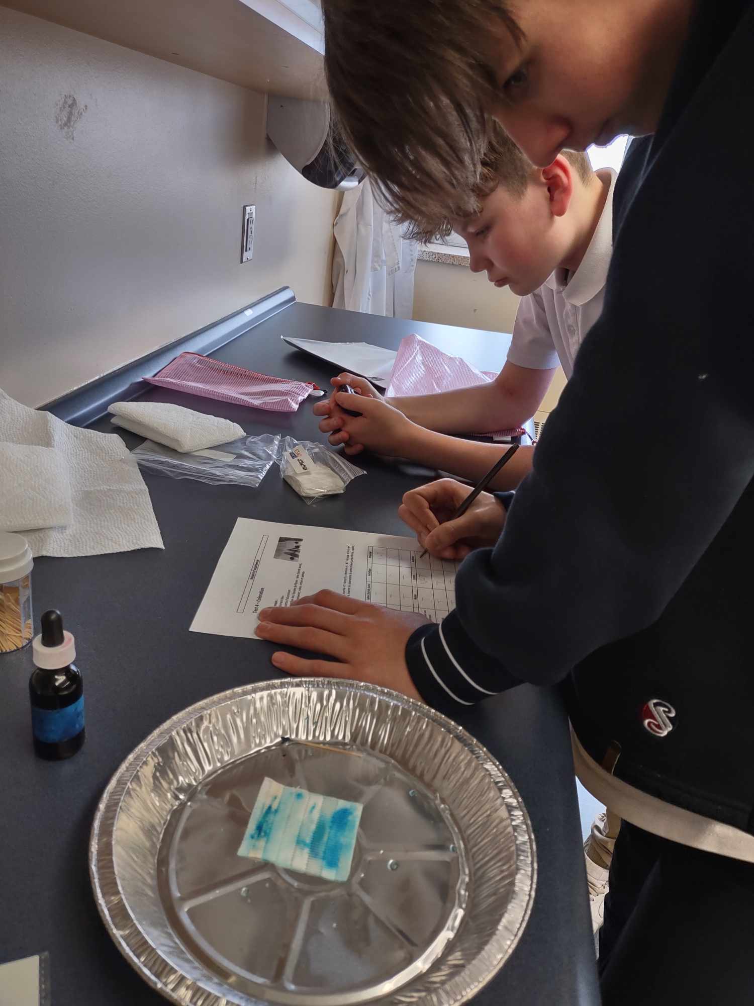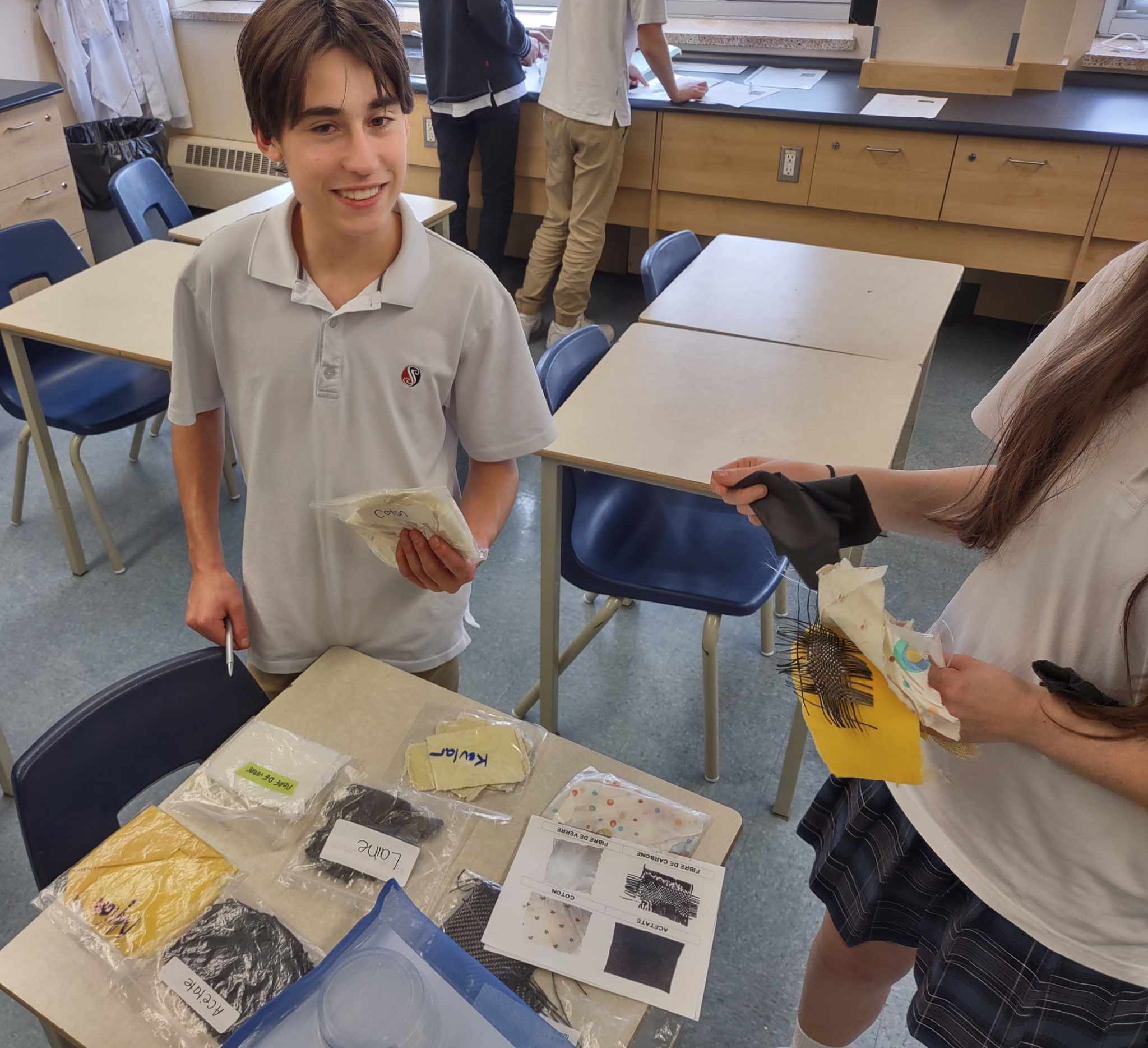 Ateliers Technoscience Mauricie Centre-du-Québec avec l’intéressante Adeline. Au programme de cet après-midi dans le cours d’option multisciences de 3e secondaire : laboratoires de prospection minière et tests de propriétés textiles.