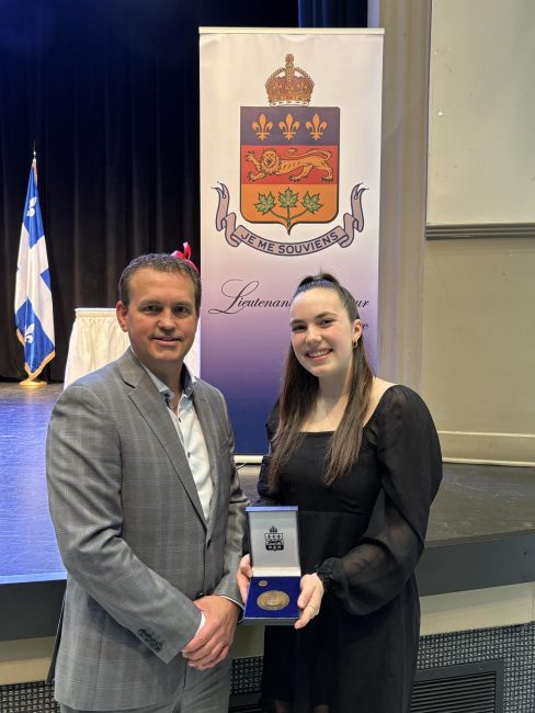 Samedi dernier, Céleste Chagnon a reçu la Médaille du Lieutenant-gouverneur pour la jeunesse qui reconnait son engagement bénévole, sa détermination et son dépassement de soi. Elle souligne aussi son influence positive au sein de sa communauté. Félicitations Céleste, cette reconnaissance est grandement méritée.