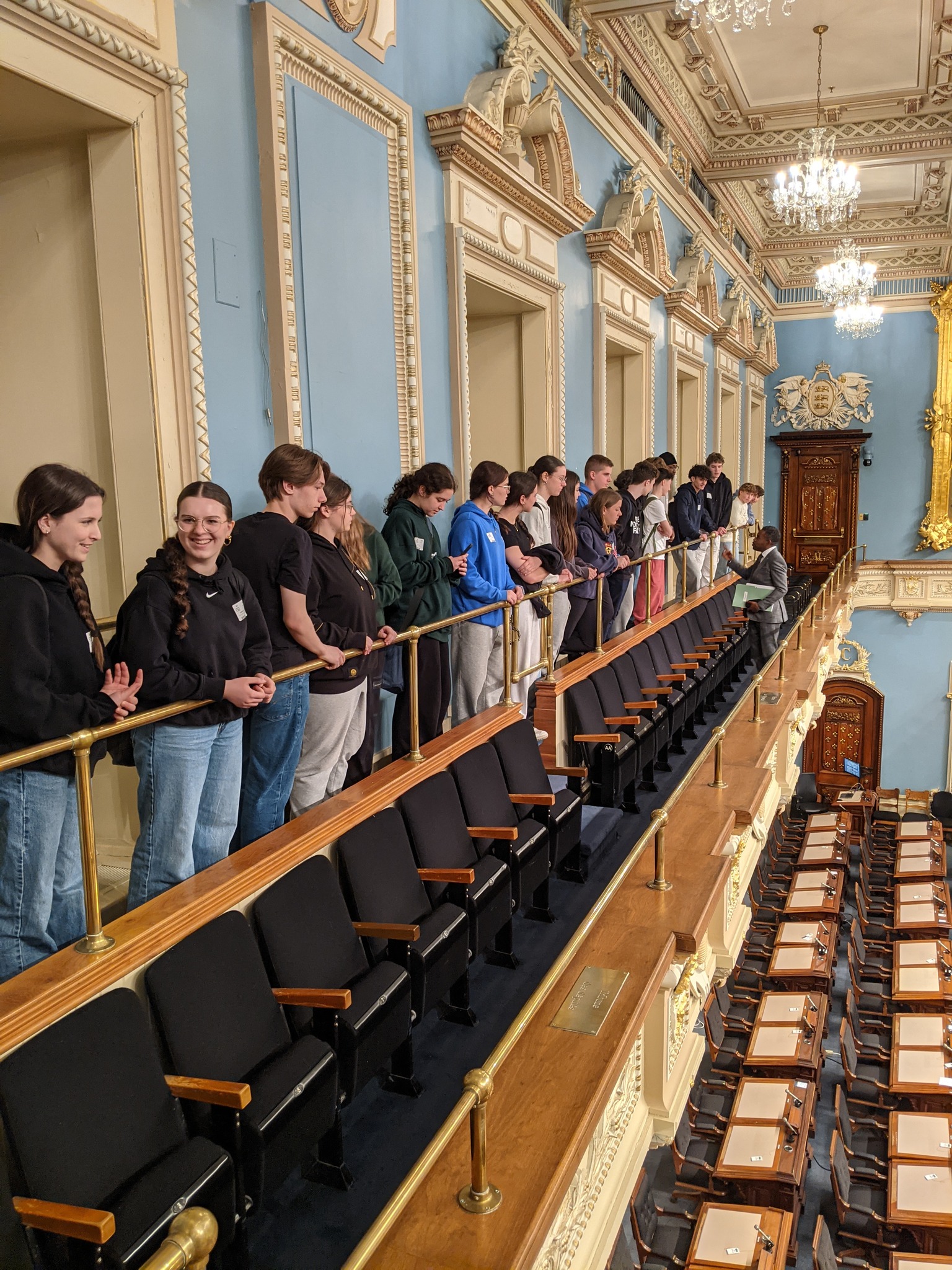 Le jeudi 2 mai, les élèves des groupes 39 et 40 du programme d’éducation intermédiaire du Baccalauréat International (PEI) ont exploré Québec lors d’une sortie enrichissante. Ils ont découvert le Parlement lors du parcours «Québec, capitale nationale», apprenant sur le gouvernement provincial et l’architecture du lieu. Le second parcours, «Québec, la Nouvelle-France», les a immergés dans les origines coloniales françaises du Vieux-Québec.