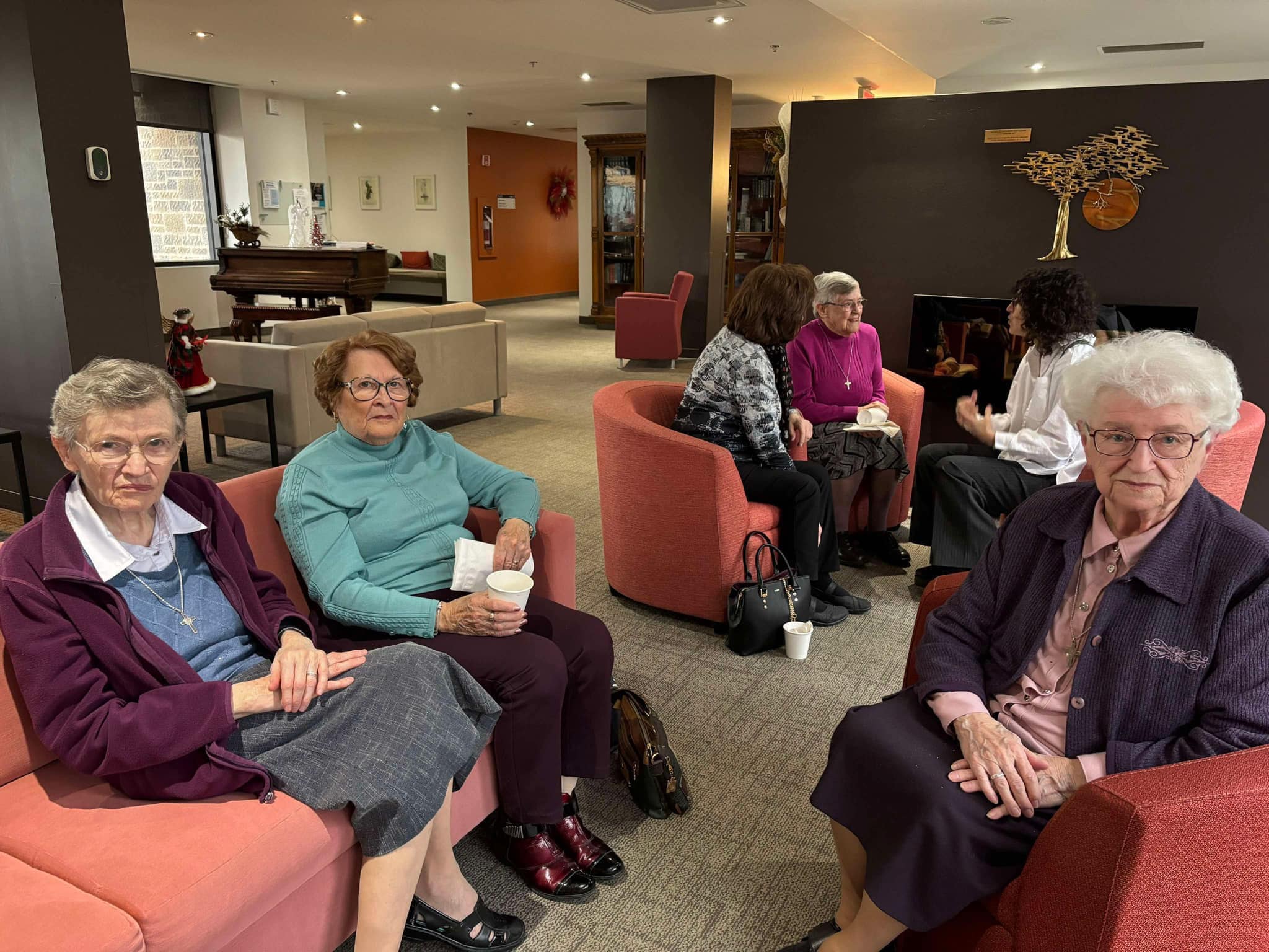 De belles retrouvailles entre anciens de l’ÉSSJ et Sœurs de Saint-Joseph ayant travaillé à l’école ont eu lieu aux Jardins d’Aurélie samedi dernier. Partages de souvenirs, discussions et bonheur étaient au rendez-vous! Tout le monde était unanime: l’ÉSSJ est une grande famille qui reste dans nos cœurs.