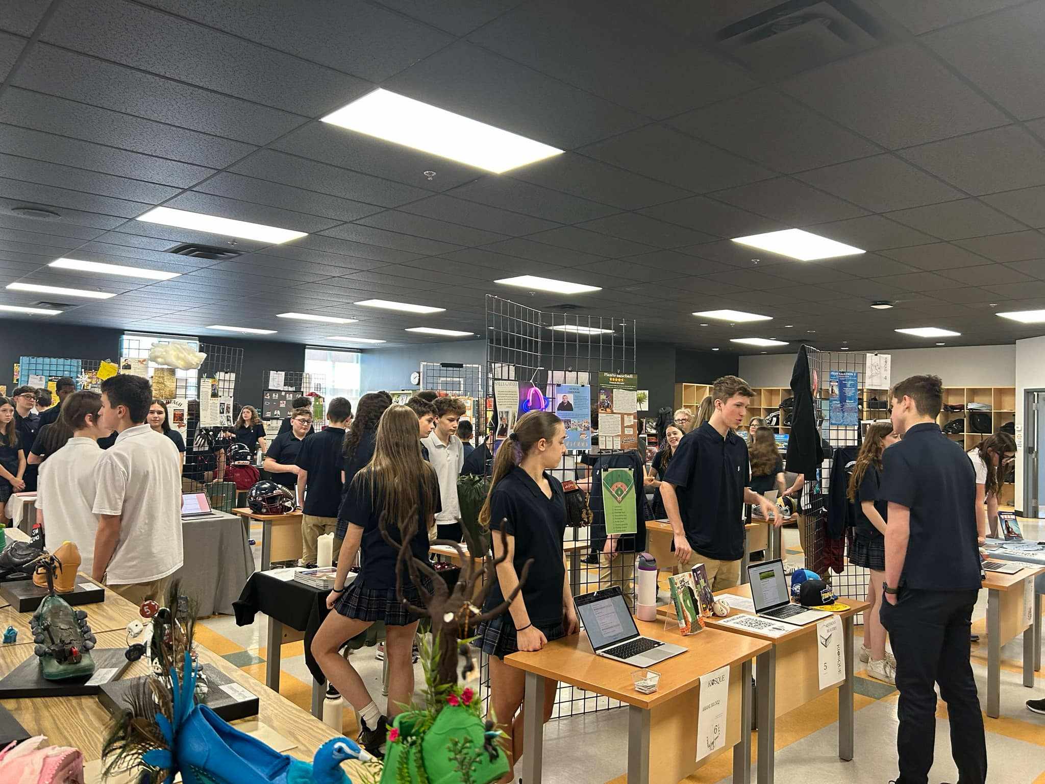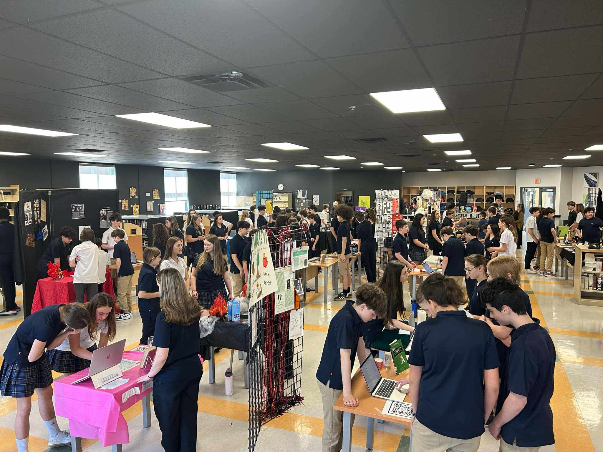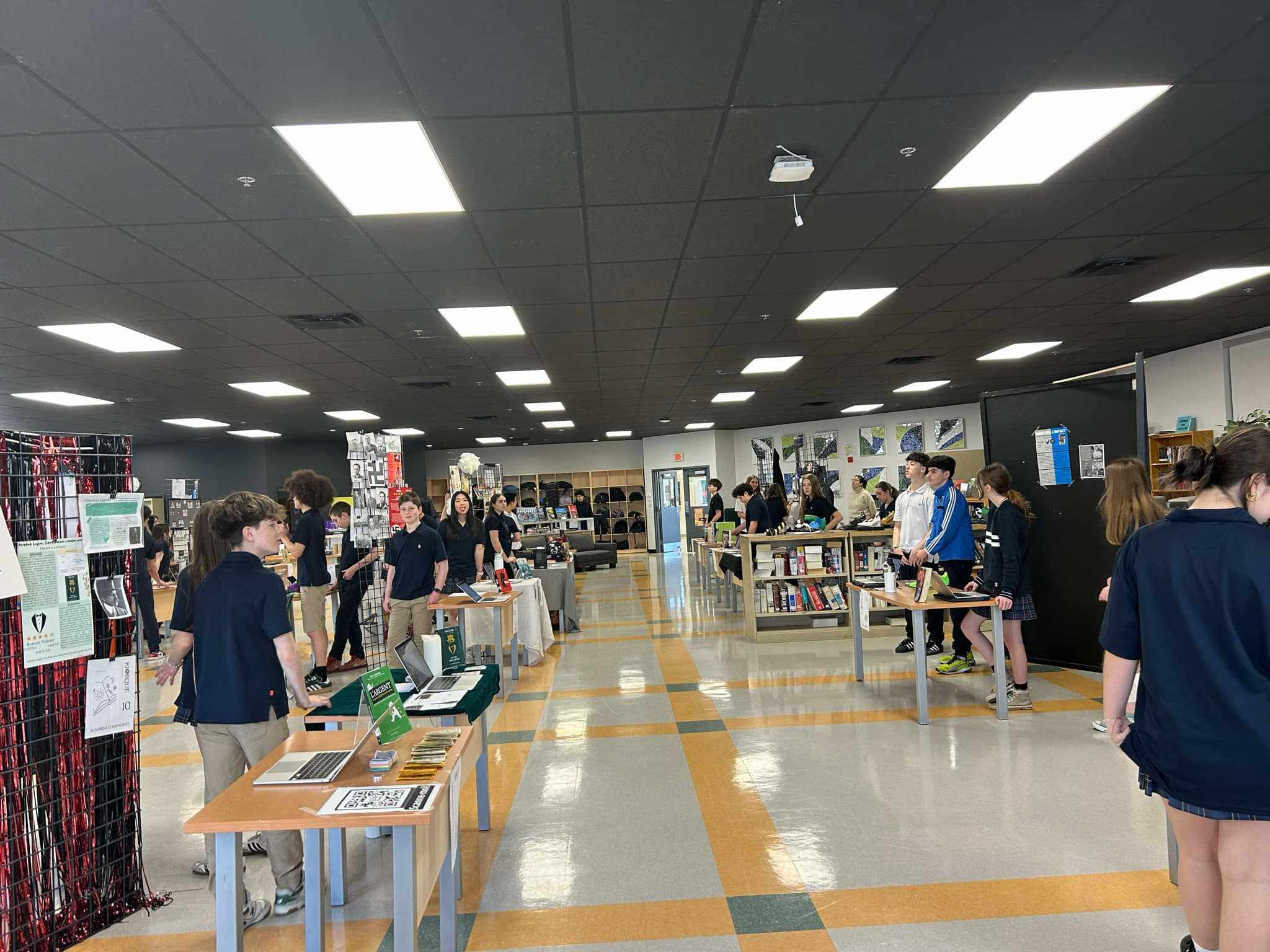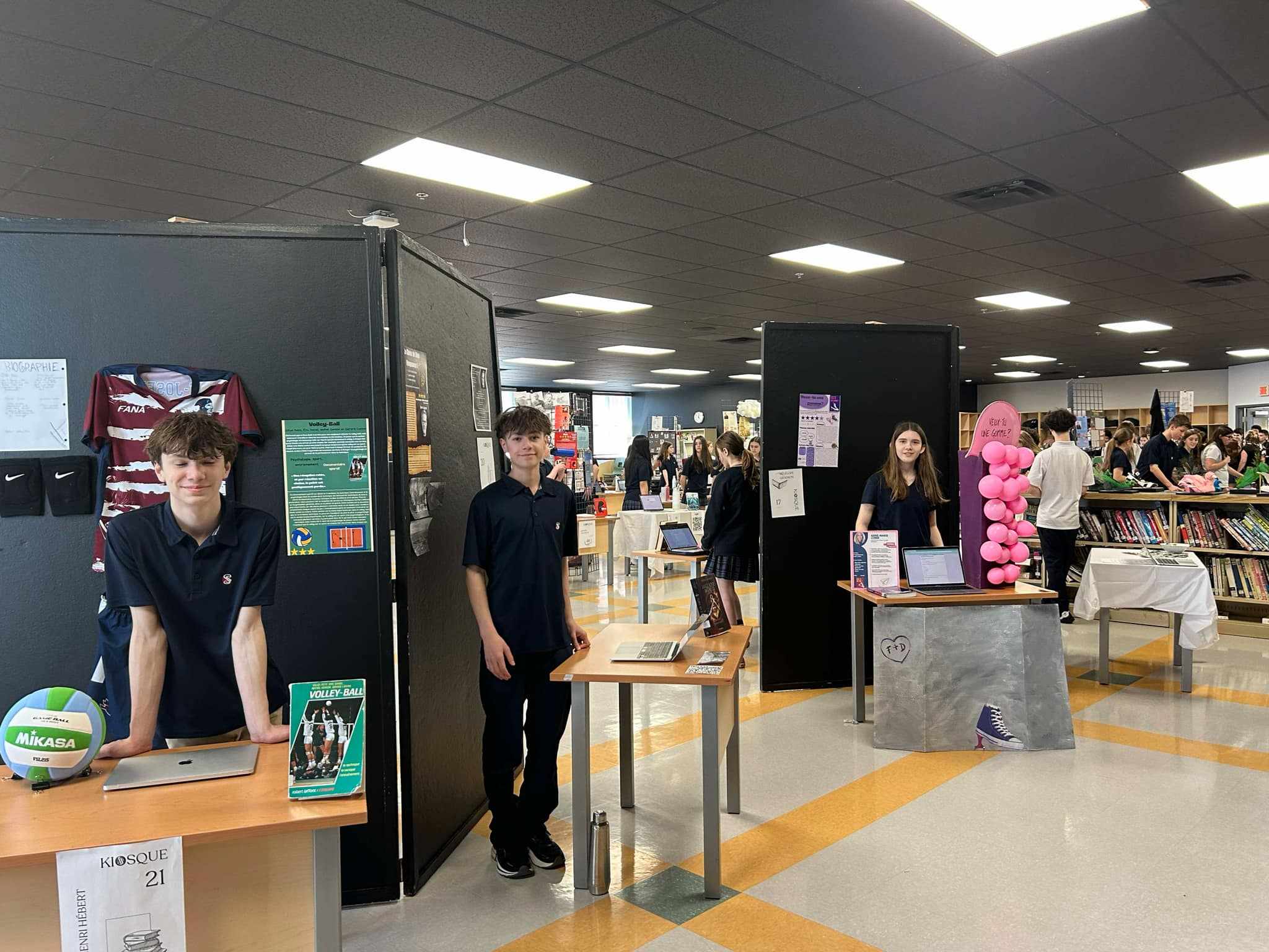 Le 17 avril dernier, les élèves de 2e secondaire du PEI ont permis à notre bibliothèque d’être mise de l’avant grâce à la concrétisation du projet «Découvre ta bibliothèque». Plus de 300 élèves de 1re secondaire ont pu découvrir une belle portion de l’offre littéraire de l’ÉSSJ, grâce à la présentation de près de 50 kiosques de lecture. Les élèves ont pu réaliser que «tous les goûts sont dans la lecture»!