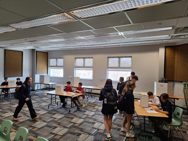 Le mercredi 23 avril dernier, à l’heure du dîner, dans le cadre du cours de Monde contemporain de 5e secondaire, avait lieu la simulation du vote étudiant, chapeauté par l’organisme canadien @CIVIX_Canada_FR, en lien avec les élections fédérales 2025.
