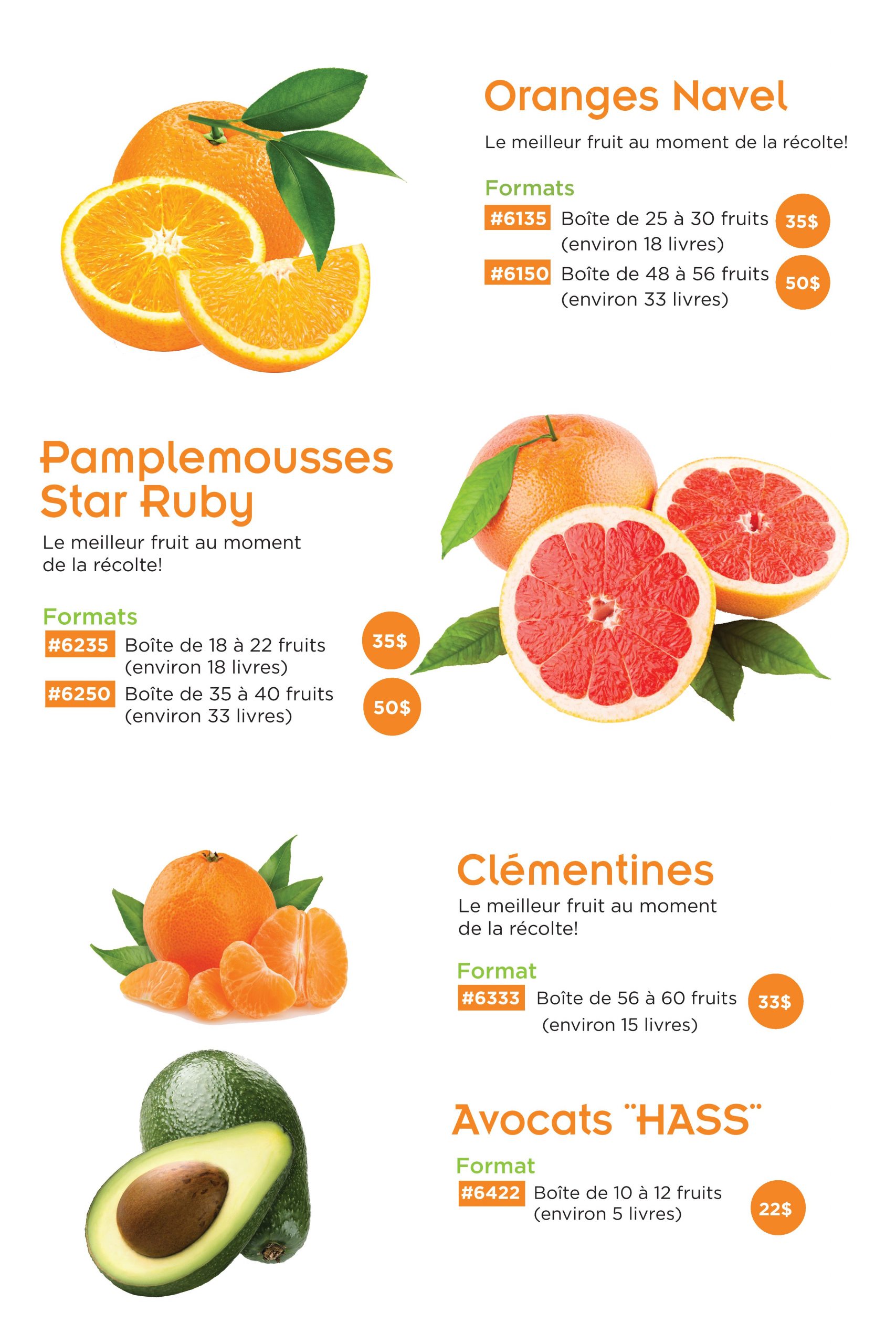 Grâce à notre boutique en ligne au https://www.perfection.ca/fr/saint-joseph-29022, découvrez nos 4 variétés de fruits: oranges, pamplemousses roses, clémentines et avocats.  De plus, 3 coffrets de fromages québécois sont aussi disponibles.  Les jus & smoothies pressés à froid LOOP complètent notre offre cette année.  Il vous est possible d’y faire directement vos achats en encourageant un élève bien précis de l’ÉSSJ ou en communiquant avec Mme Karine Malo à l’adresse suivante : karine@essj.qc.ca.  Faites vite, la boutique fermera le 27 octobre !